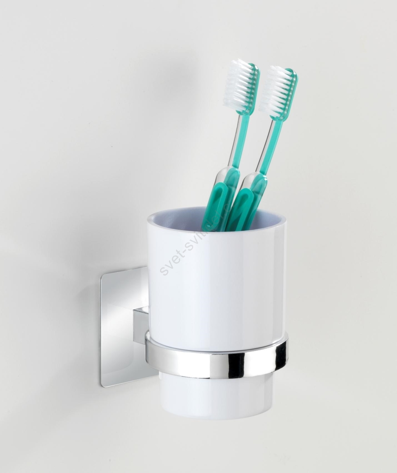 WENKO 23847800-Kelímek na kartáčky TURBO-LOC QUADRO ED. 7x9,5 cm lesk.chrom/bílá