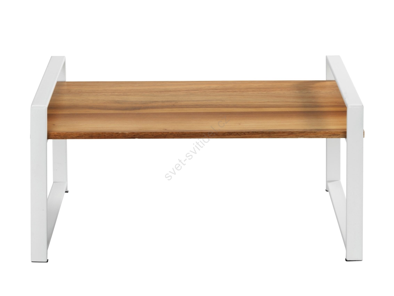 • Stylová kombinace bílého kovového rámu a police z akáciového dřeva.
