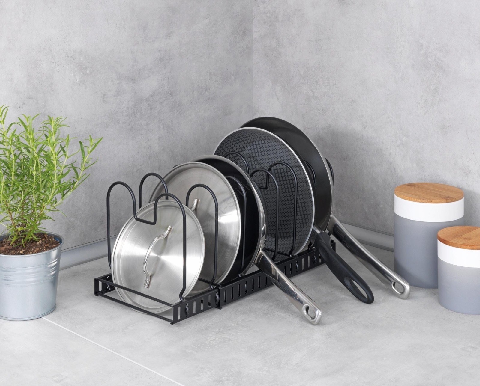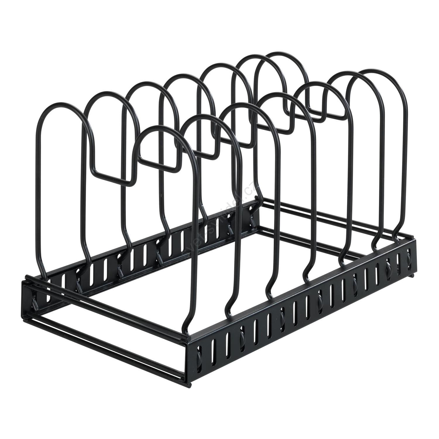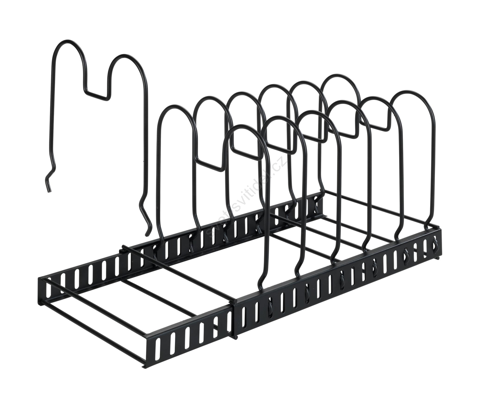 • Umožňuje úsporné a přehledné uložení poklic, pánví, plechů či prkének.
