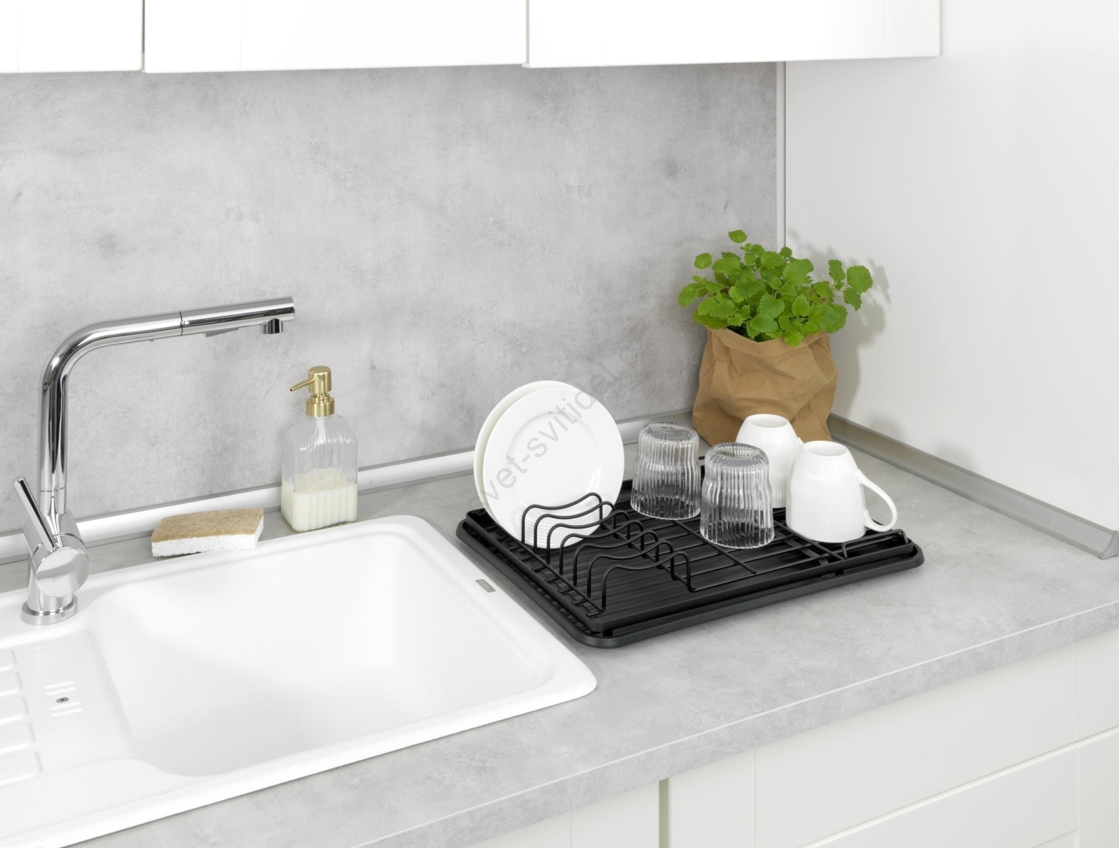 • Moderní odkapávač nádobí se stylovým černým designem.