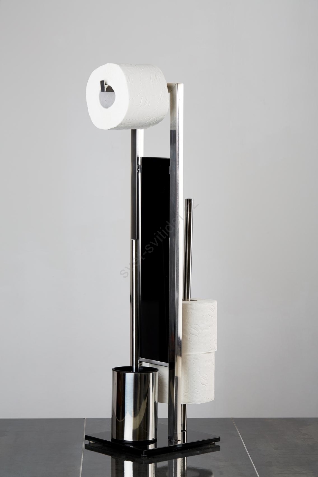 • Kombinace 3v1: držák na WC kartáč, držák na toaletní papír a úložný prostor až pro 3 náhradní role.