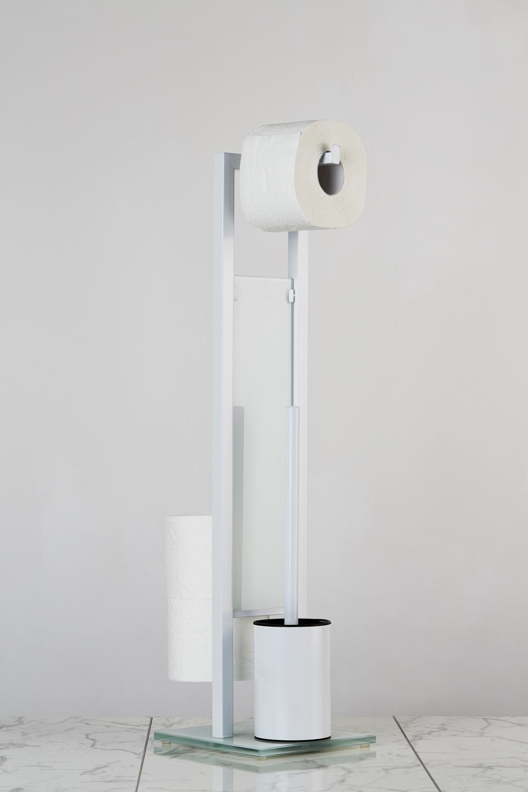 • Praktická 3v1 kombinace – držák na WC kartáč, držák na toaletní papír a zásobník na náhradní role.
