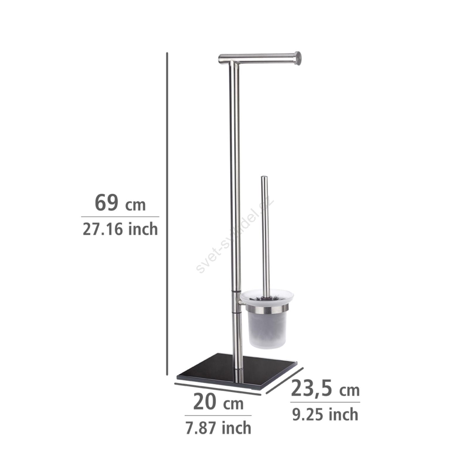 • Kombinace stojanu na toaletní papír a WC štětky v jednom.