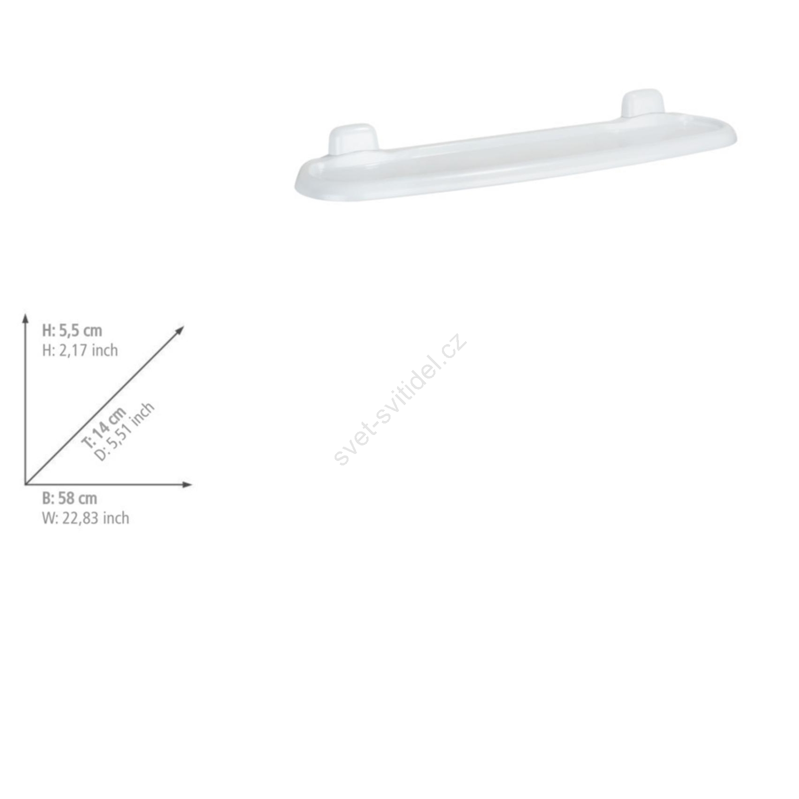 • Kompaktní rozměry šířka 58 cm × výška 5,5 cm × hloubka 14 cm.