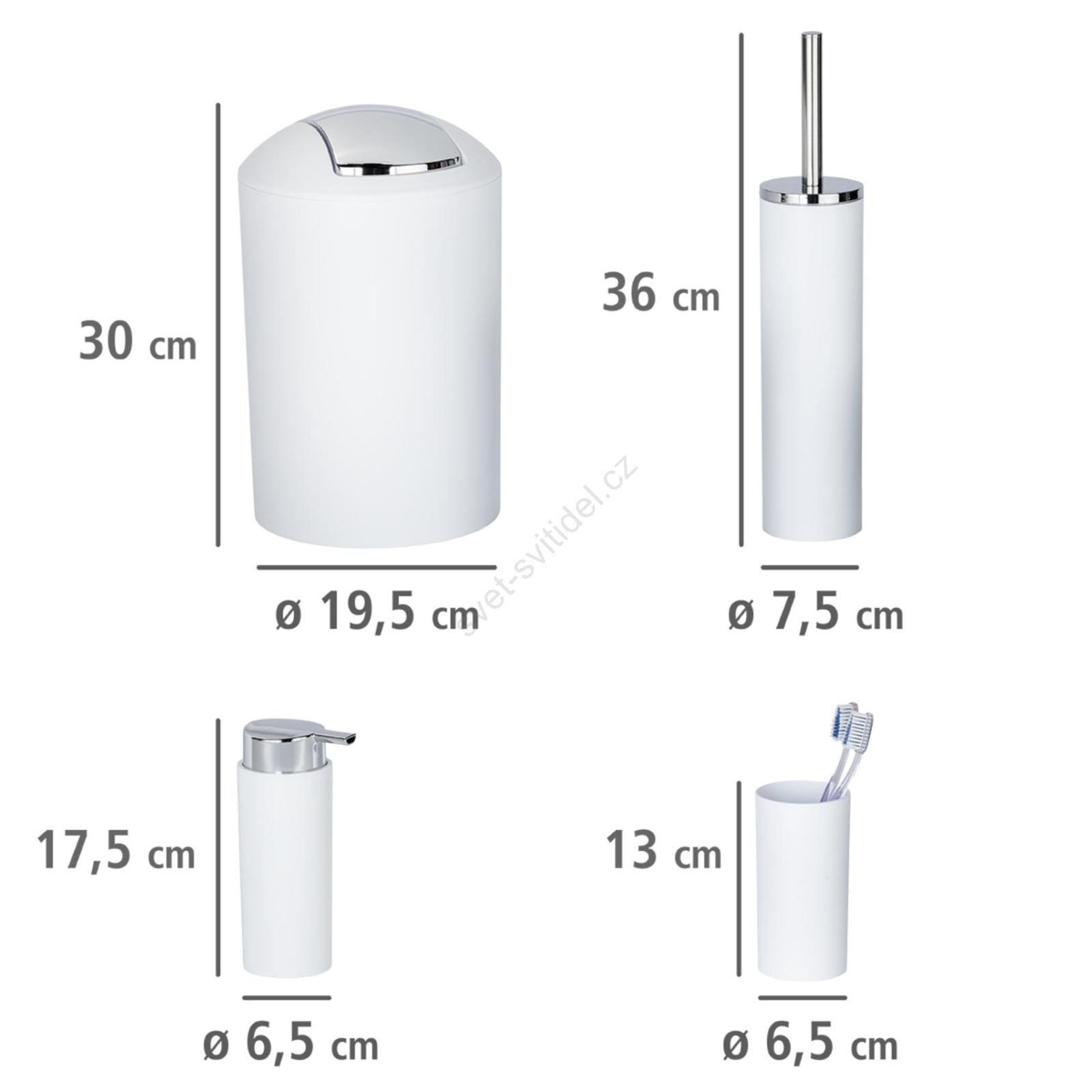 • Obsahuje dávkovač mýdla, kelímek na zubní kartáčky, WC štětku s držákem a kosmetický koš.