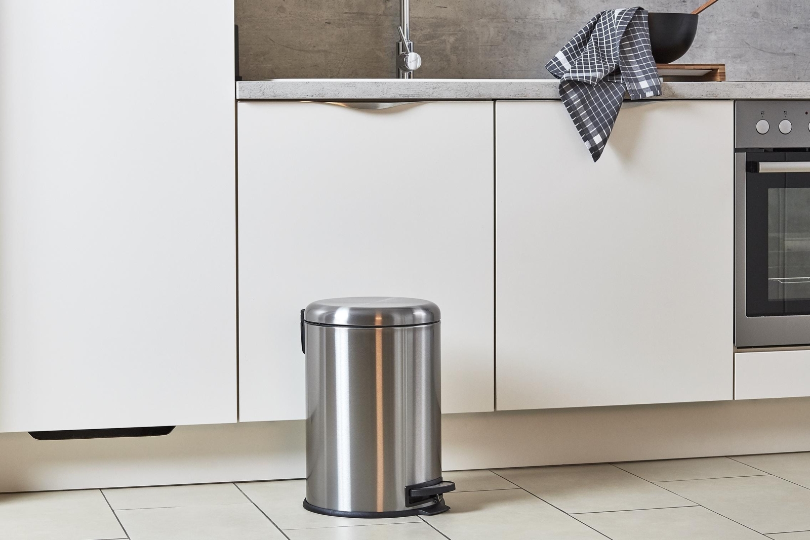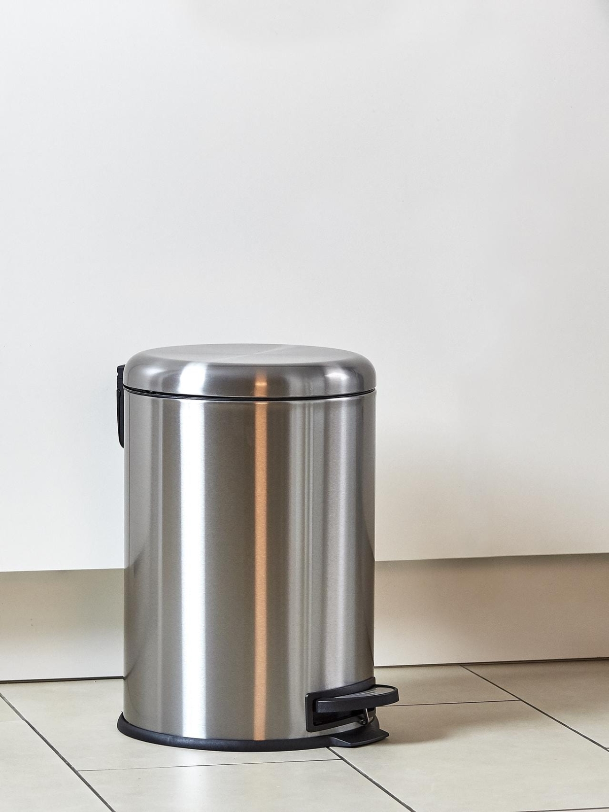 • Elegantní pedálový koš z matné nerezové oceli s moderním designem.