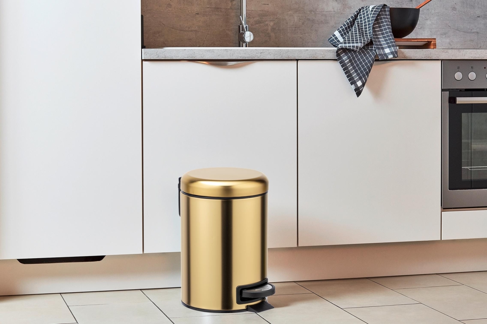 • Elegantní pedálový koš v moderním matně zlatém provedení.