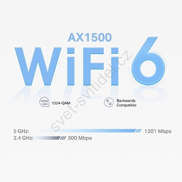 • Rychlejší připojen: Wi-Fi 6 připojení s rychlostí až 1 500 Mbit/s – 1 201 Mbit/s v pásmu 5 GHz a 300 Mbit/s v pásmu 2,4 GHz.