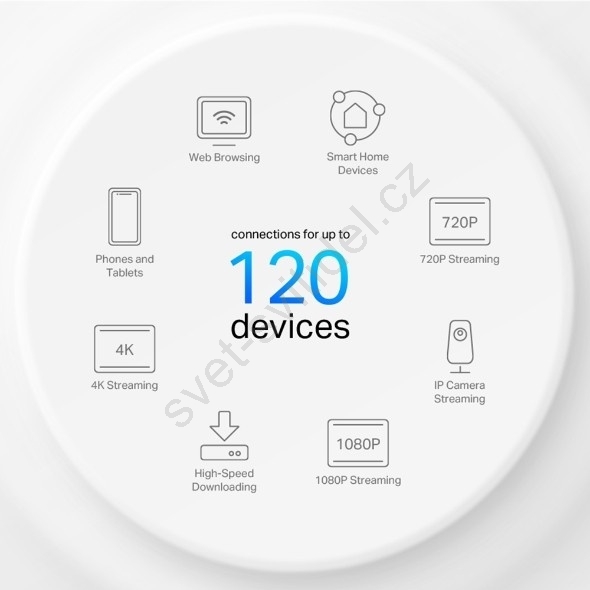 • Připojení více zařízení: Technologie OFDMA a MU-MIMO zvyšuje kapacitu čtyřikrát, aby umožnila současný přenos na více zařízení.
