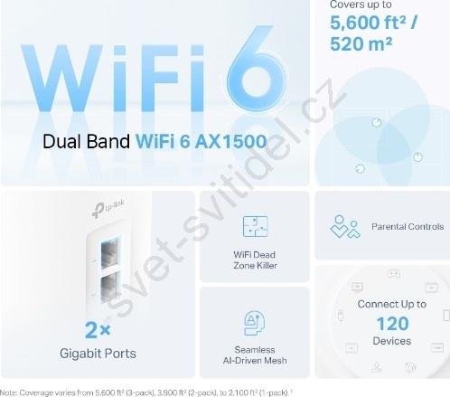 • Poskytuje robustní pokrytí bez slabých signálů, díky mesh architektuře.