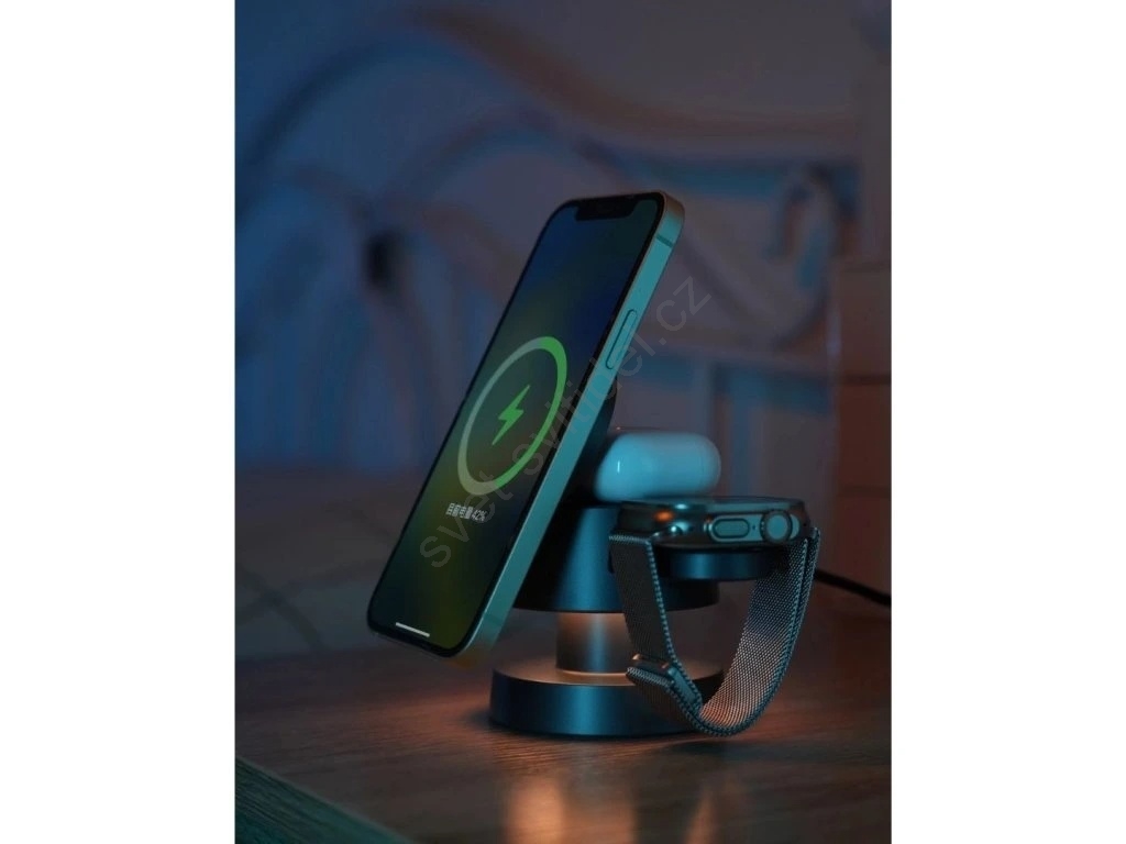 • Bezdrátová nabíječka 4-in-1 je univerzální, praktická a navržená tak, aby zvládla nabíjet víc zařízení najednou — ideální pro telefon, sluchátka, hodinky i další drobnou elektroniku.