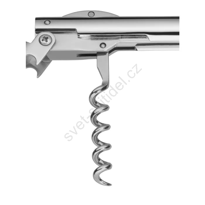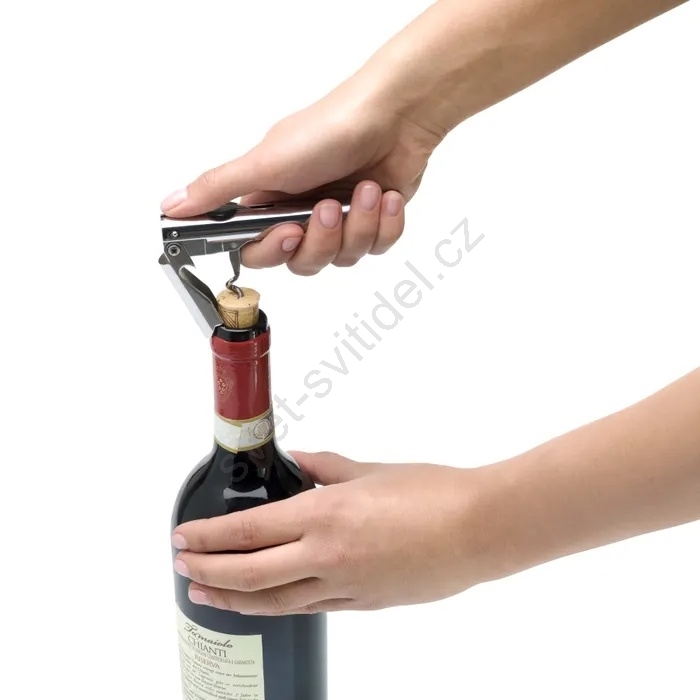 • Funkce 3 v 1: Vývrtka (k odstranění korku), řezačka fólie (k odstranění kapsle) a otvírák na lahve (korunkové uzávěry).