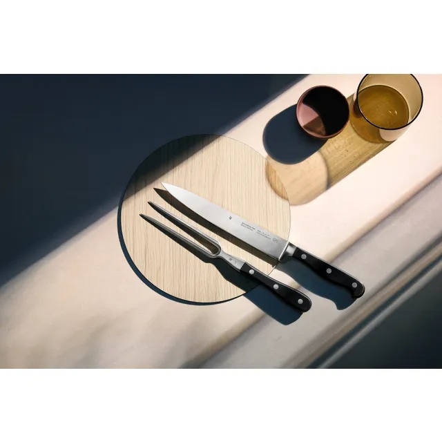• Sada obsahuje porcovací nůž a vidličku, která drží maso pevně a umožňuje přesné krájení.